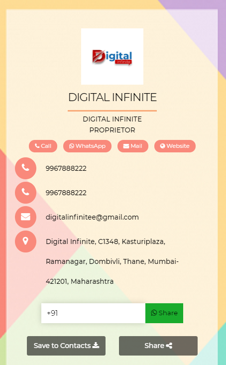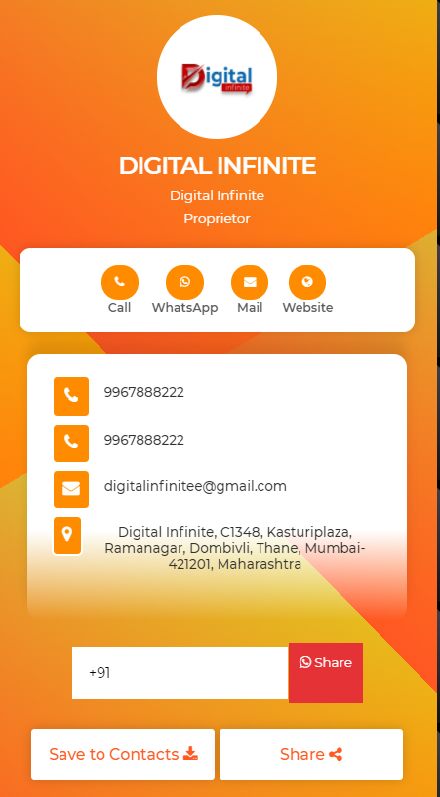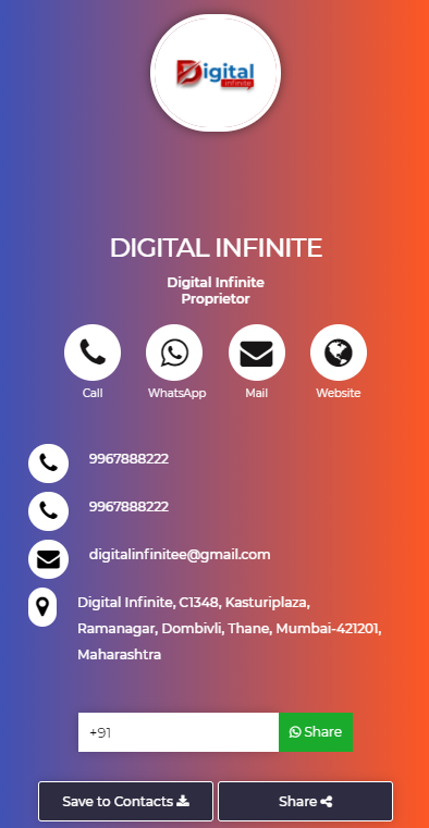 If you meet your prospective customers in person (one to one meeting) or atleast you do telephonic conversations to market and sell your products or services, then our Digital Business Card will help convey your message in a more strategic way.